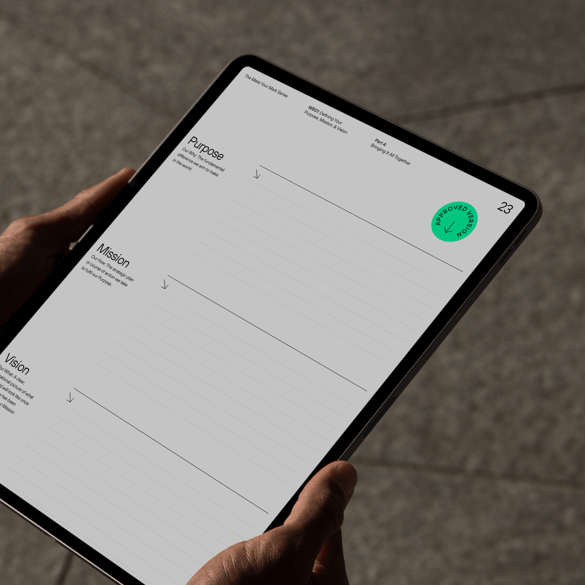 This 28-page PDF workbook is your blueprint for building a brand with direction and intent. It takes you step-by-step through defining and aligning your Purpose, Mission, and Vision — the three statements that set the tone for everything your brand does.